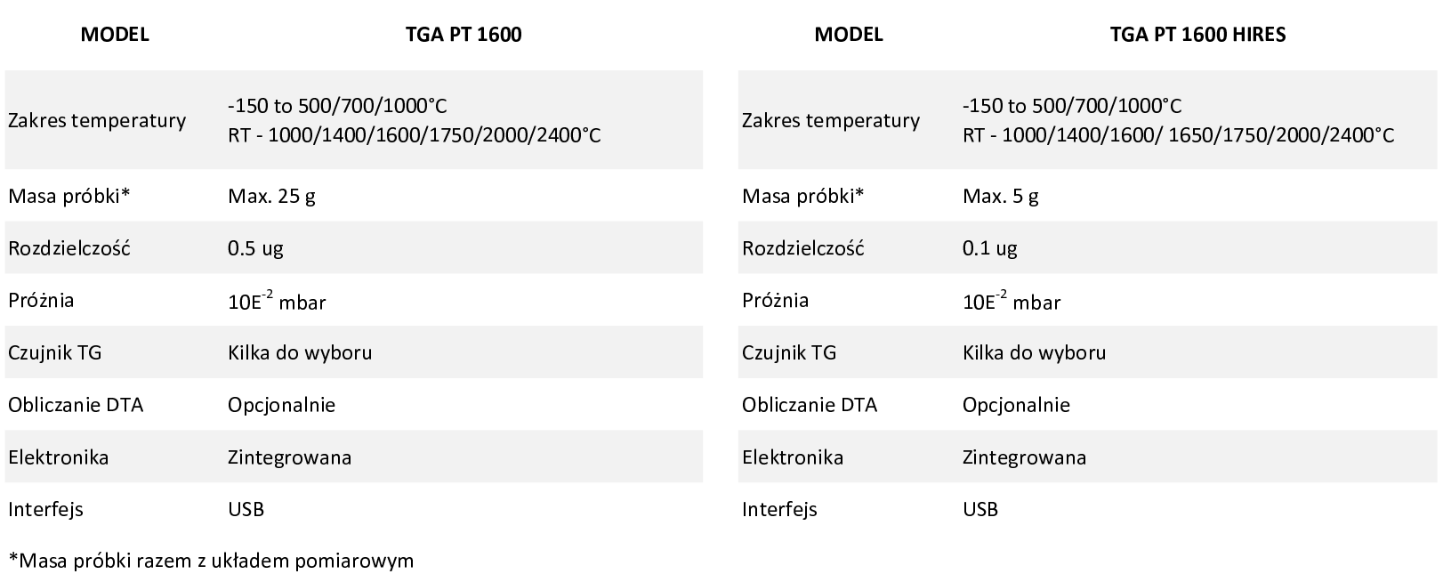 • Termowaga umożliwia analizę próbek o masie do 5 g (łącznie z systemem pomiarowym) w zakresie temperatur od temperatury otoczenia do 1100°C.